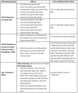 2. Chương trình ưu đãi lãi suất cho khách hàng vay mua xe Toyota: